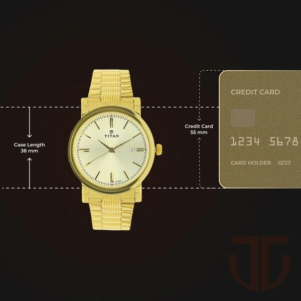 Titan Quartz Analog with Date Champagne Dial Golden Stainless Steel Strap Watch For Men